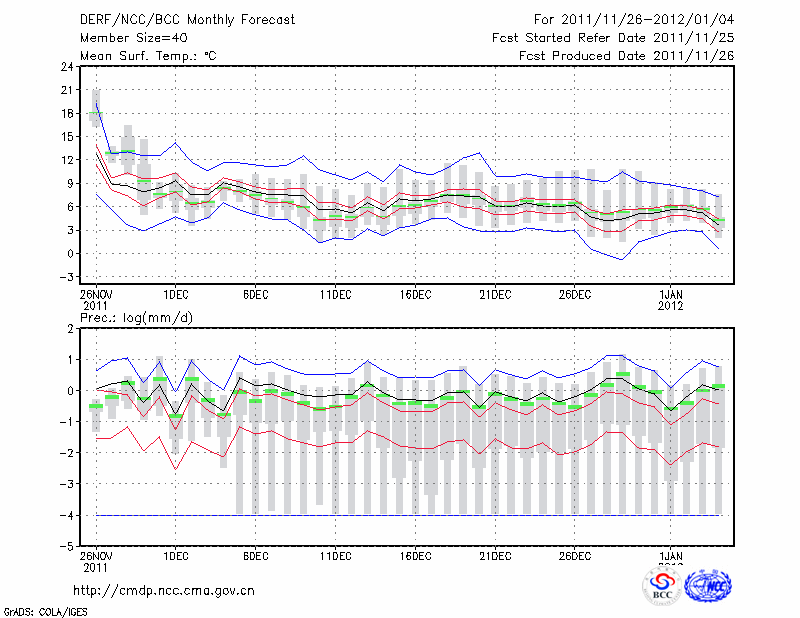 南 昌 (LAT:28.60 LON:115.92) 2011-11-26        预测
