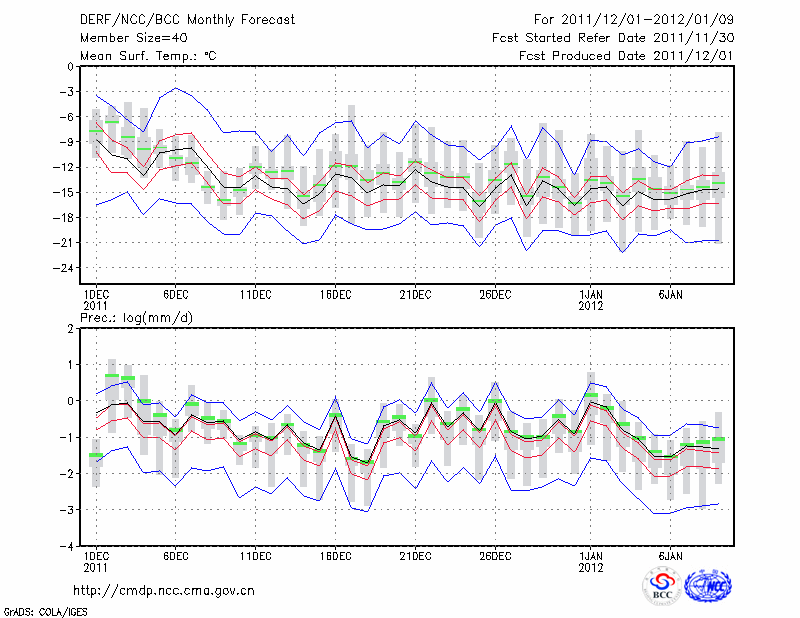 鸡 西 (LAT:45.28 LON:130.95) 2011-12-01        预测