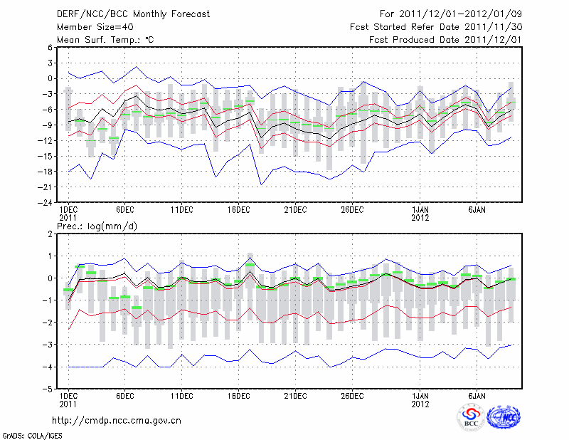 塔 城 (LAT:46.73 LON:83.00) 2011-12-01        预测