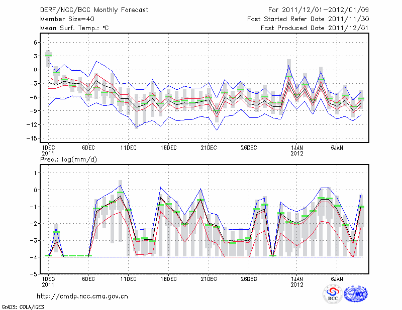 若 羌 (LAT:39.03 LON:88.17) 2011-12-01        预测