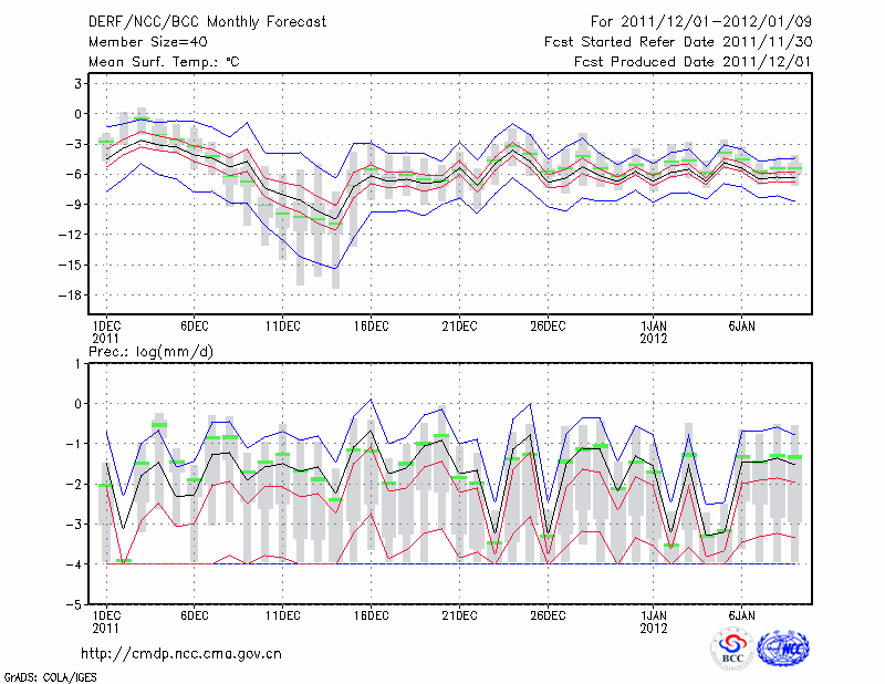 西 宁 (LAT:36.62 LON:101.77) 2011-12-01        预测