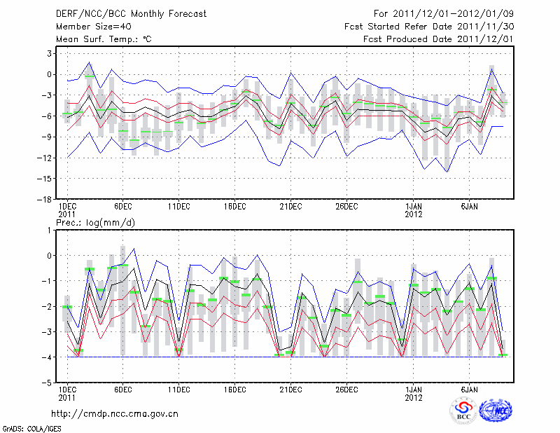 张 家 口 (LAT:40.78 LON:114.88) 2011-12-01        预测