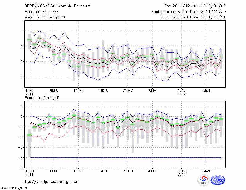 汉 中 (LAT:33.07 LON:107.03) 2011-12-01        预测