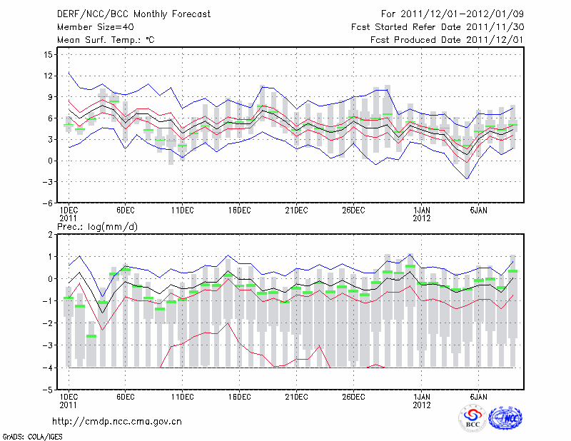 安 庆 (LAT:30.53 LON:117.05) 2011-12-01        预测