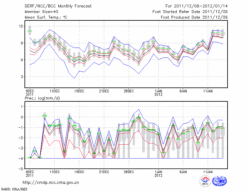 丽 江 (LAT:26.83 LON:100.47) 2011-12-06        预测