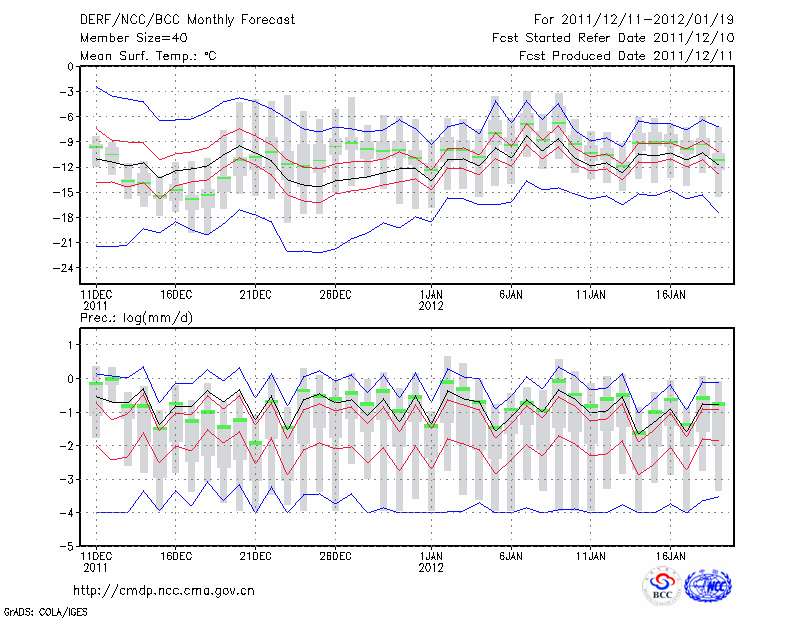 乌 苏 (LAT:44.43 LON:84.66) 2011-12-11        预测