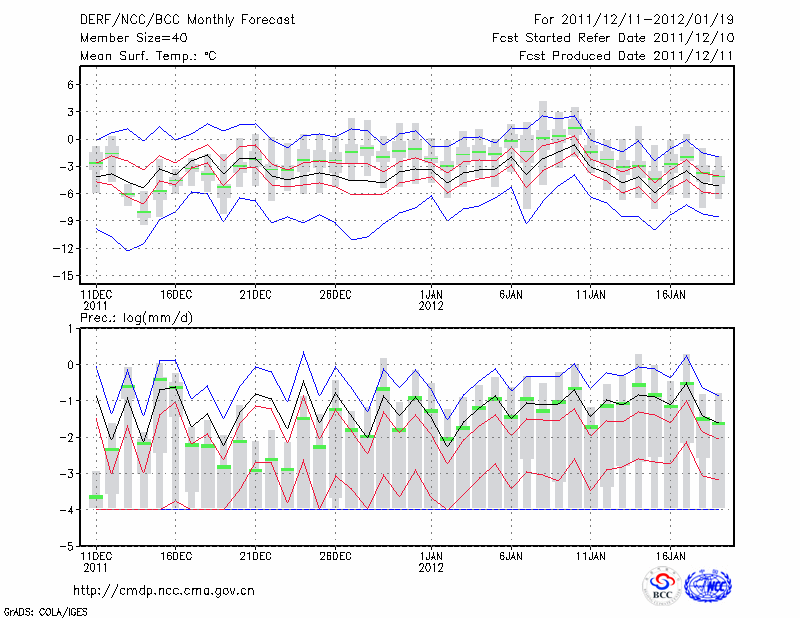 西 峰 镇 (LAT:35.73 LON:107.63) 2011-12-11        预测