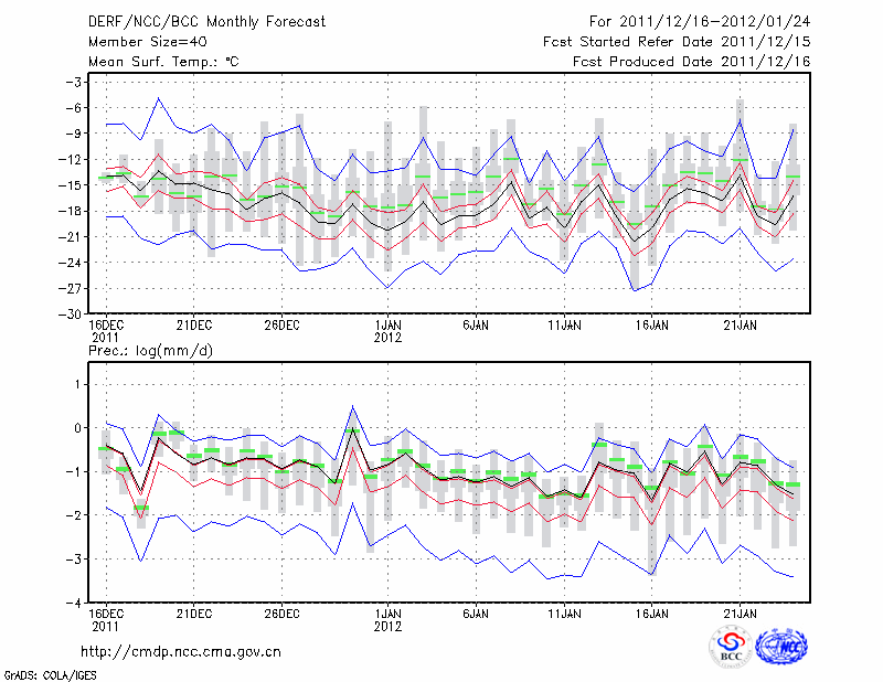 哈 尔 滨 (LAT:45.75 LON:126.77) 2011-12-16        预测