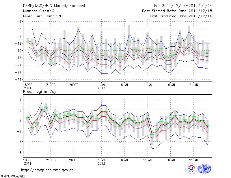 牡 丹 江 (LAT:44.57 LON:129.60) 2011-12-16        预测