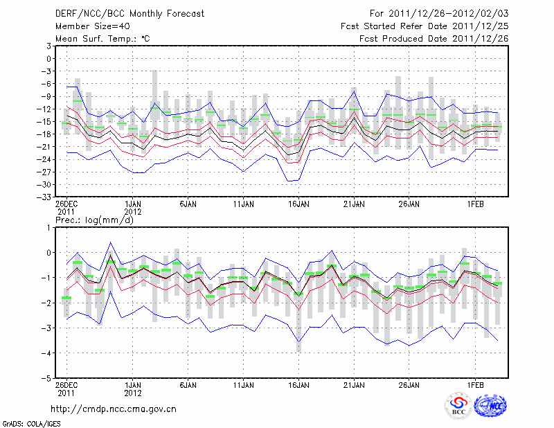 哈 尔 滨 (LAT:45.75 LON:126.77) 2011-12-26        预测
