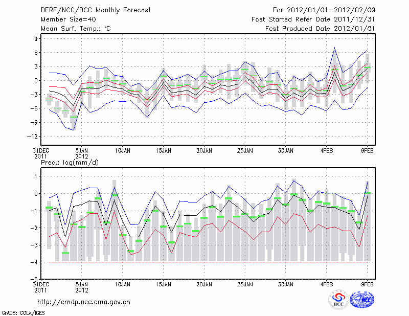潍 坊 (LAT:36.70 LON:119.08) 2012-01-01        预测