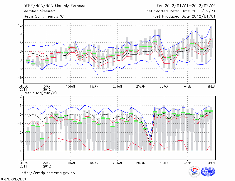 蚌 埠 (LAT:32.95 LON:117.37) 2012-01-01        预测
