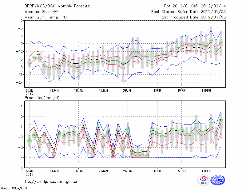 乌兰浩特 (LAT:46.08 LON:122.05) 2012-01-06        预测
