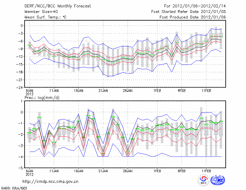 呼和浩特 (LAT:40.82 LON:111.68) 2012-01-06        预测