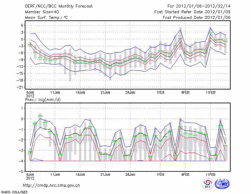 银 川 (LAT:38.48 LON:106.22) 2012-01-06        预测