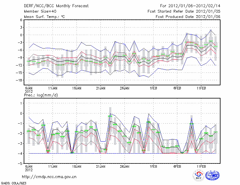 赤 峰 (LAT:42.27 LON:118.97) 2012-01-06        预测