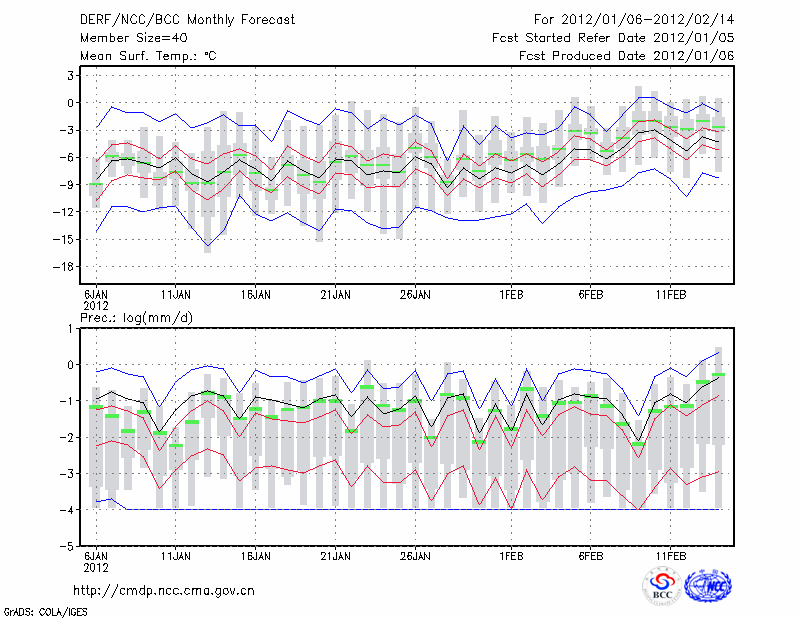 丹 东 (LAT:40.05 LON:124.33) 2012-01-06        预测