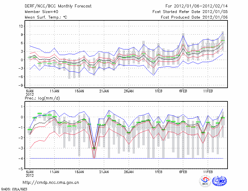 西 安 (LAT:34.30 LON:108.93) 2012-01-06        预测