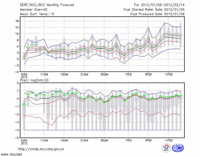 杭 州 (LAT:30.23 LON:120.17) 2012-01-06        预测