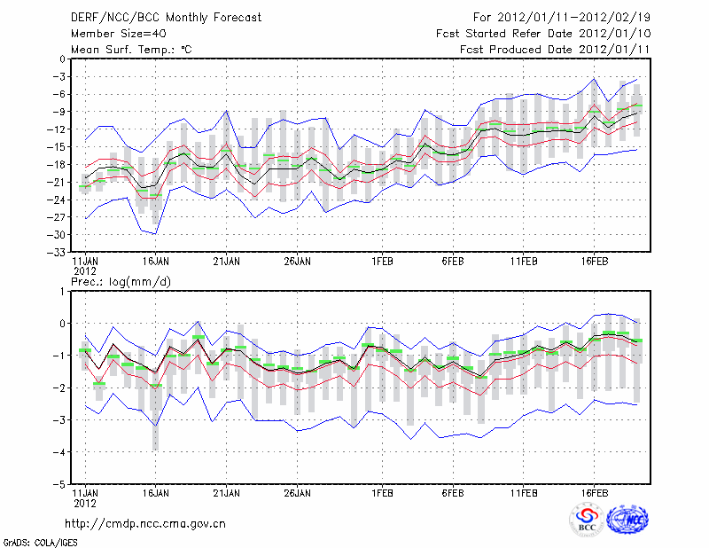 哈 尔 滨 (LAT:45.75 LON:126.77) 2012-01-11        预测