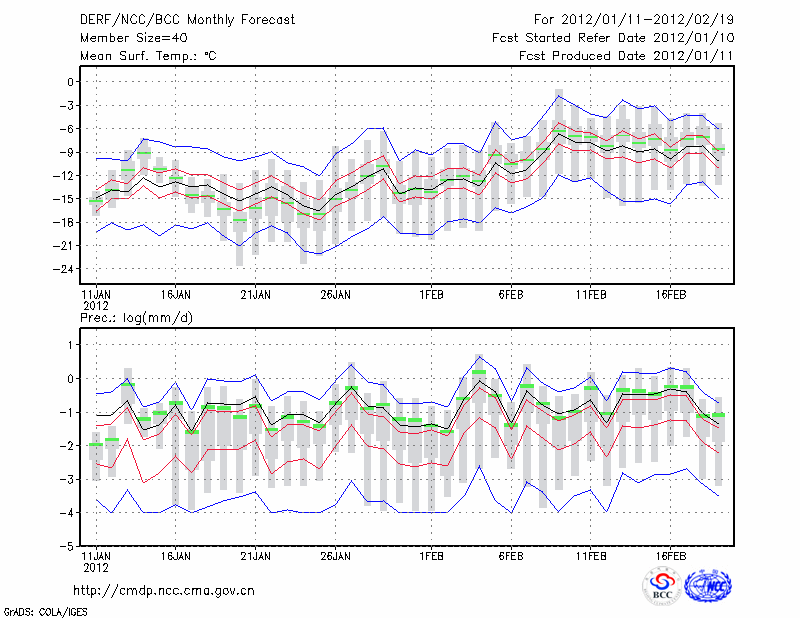 乌 苏 (LAT:44.43 LON:84.66) 2012-01-11        预测