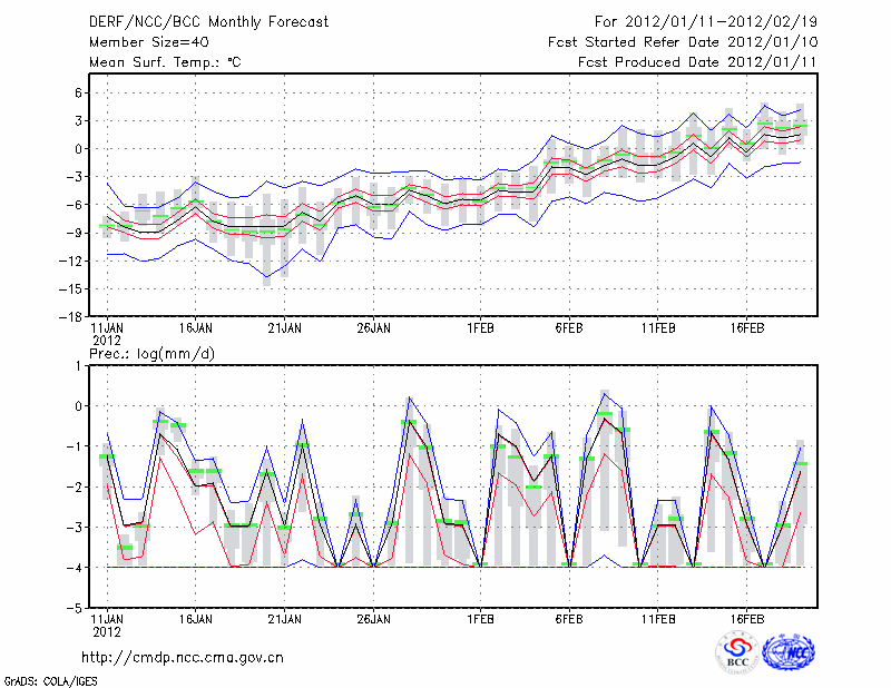 若 羌 (LAT:39.03 LON:88.17) 2012-01-11        预测