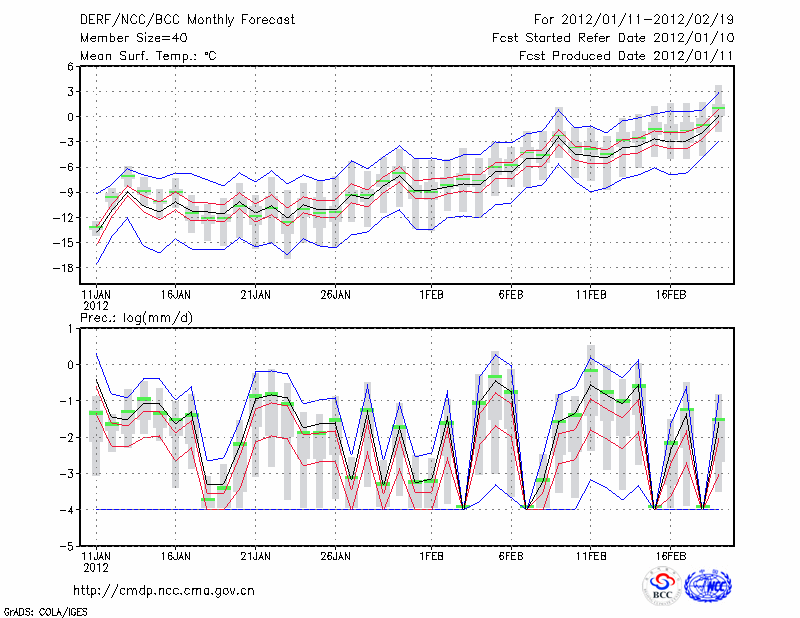 哈 密 (LAT:42.82 LON:93.52) 2012-01-11        预测