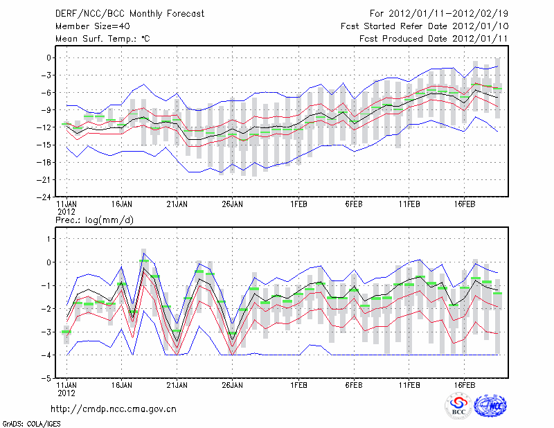 呼和浩特 (LAT:40.82 LON:111.68) 2012-01-11        预测