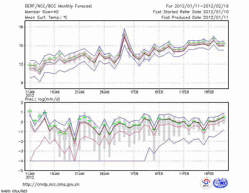 临 沧 (LAT:23.95 LON:100.22) 2012-01-11        预测