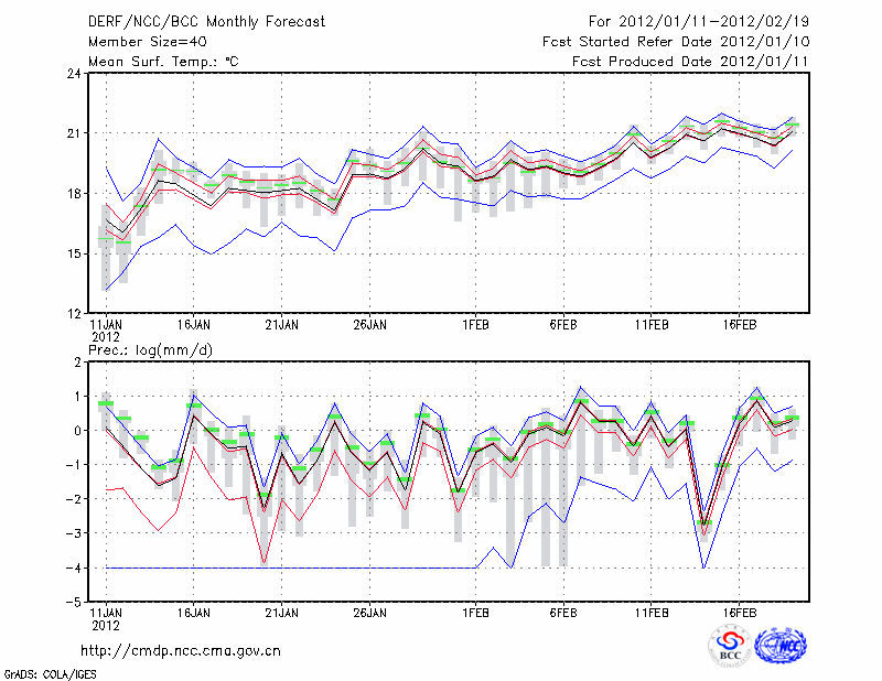 景 洪 (LAT:22.02 LON:100.80) 2012-01-11        预测