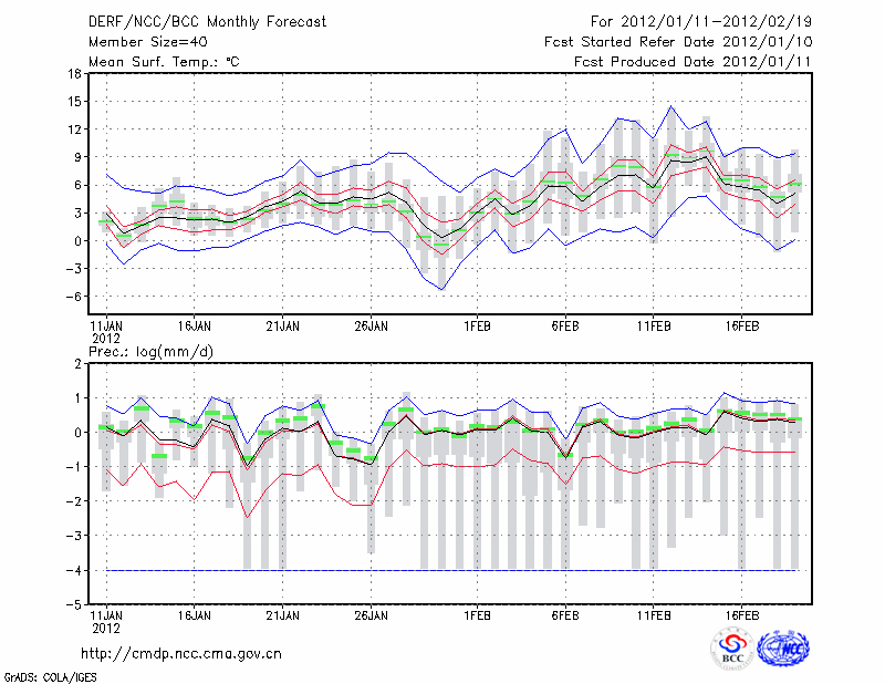 钟 祥 (LAT:31.17 LON:112.57) 2012-01-11        预测