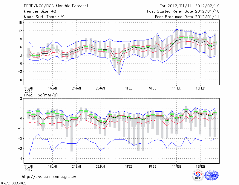 恩 施 (LAT:30.28 LON:109.47) 2012-01-11        预测