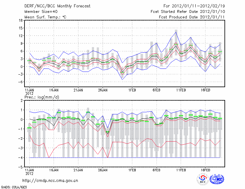 东 台 (LAT:32.87 LON:120.32) 2012-01-11        预测
