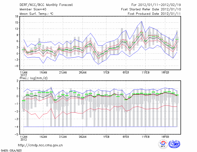 合 肥 (LAT:31.87 LON:117.23) 2012-01-11        预测