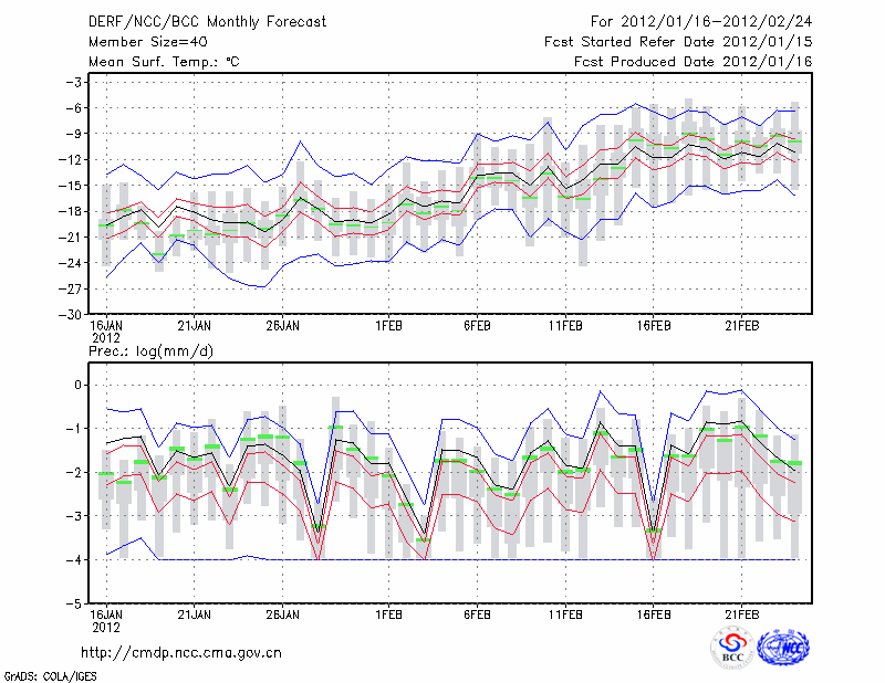 齐齐哈尔 (LAT:47.38 LON:123.92) 2012-01-16        预测