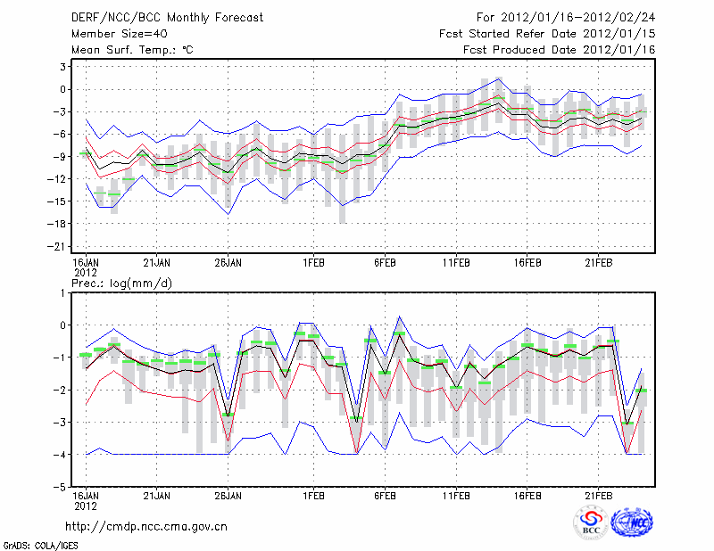 酒 泉 (LAT:39.77 LON:98.48) 2012-01-16        预测