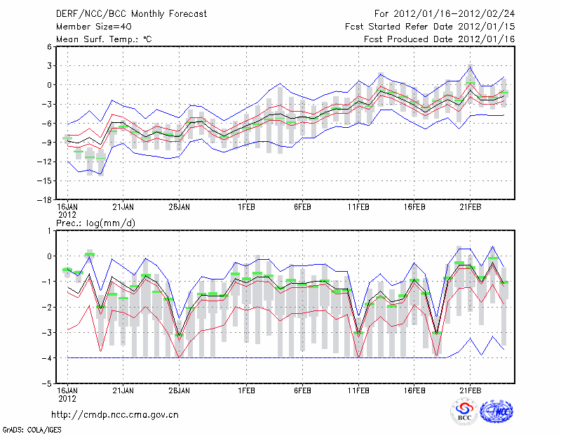 西 宁 (LAT:36.62 LON:101.77) 2012-01-16        预测