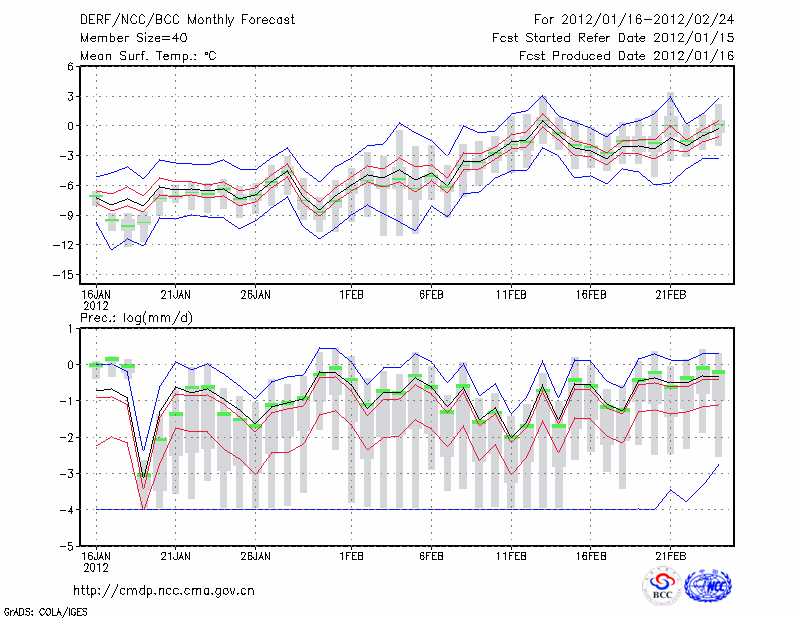 临 夏 (LAT:35.58 LON:103.18) 2012-01-16        预测
