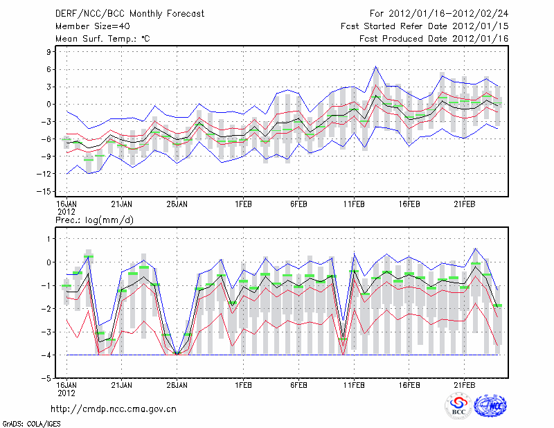 延 安 (LAT:36.60 LON:109.50) 2012-01-16        预测