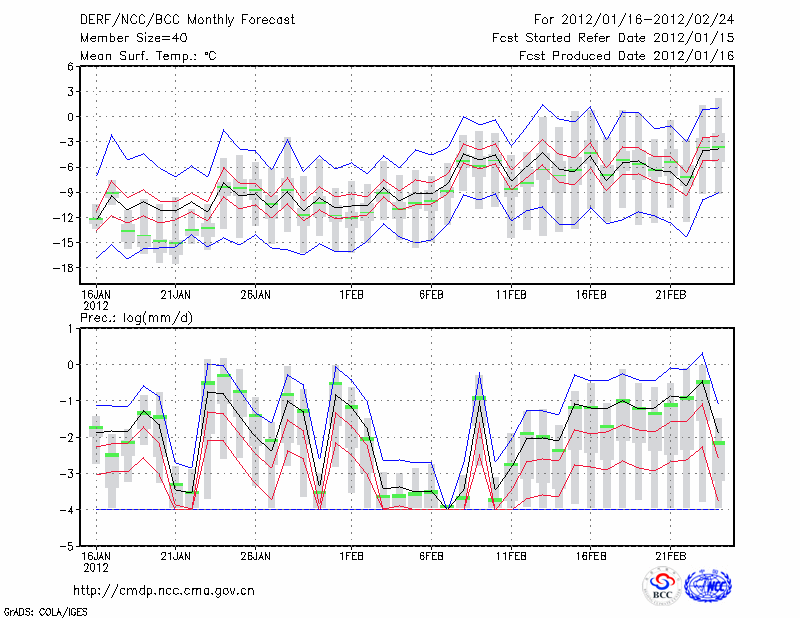 赤 峰 (LAT:42.27 LON:118.97) 2012-01-16        预测