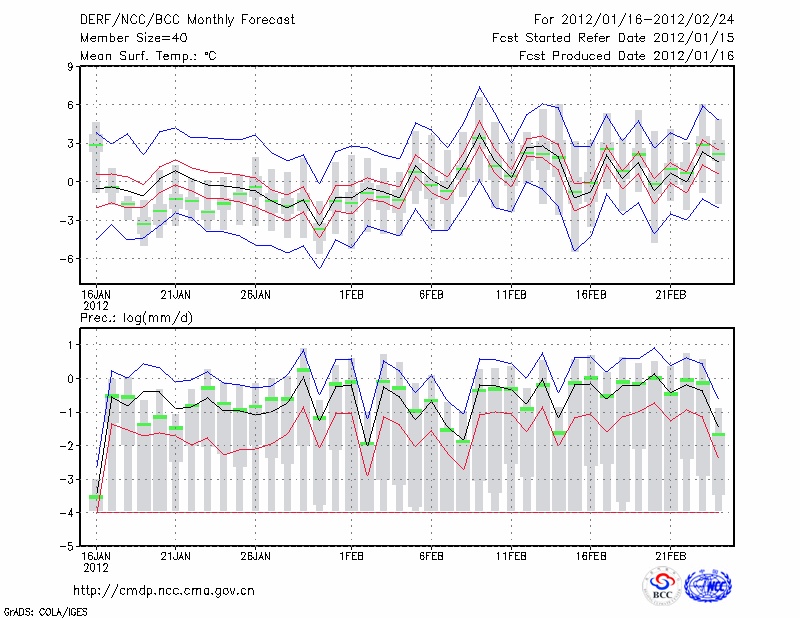 青 岛 (LAT:36.07 LON:120.33) 2012-01-16        预测