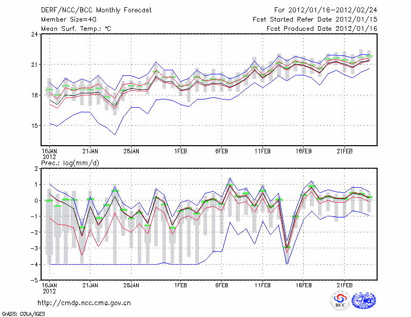 景 洪 (LAT:22.02 LON:100.80) 2012-01-16        预测