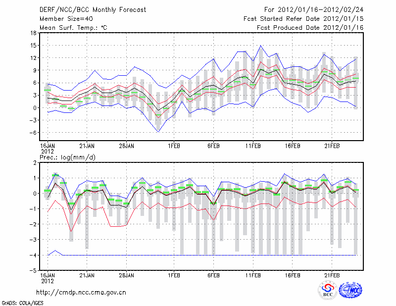 钟 祥 (LAT:31.17 LON:112.57) 2012-01-16        预测