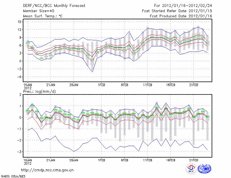 恩 施 (LAT:30.28 LON:109.47) 2012-01-16        预测