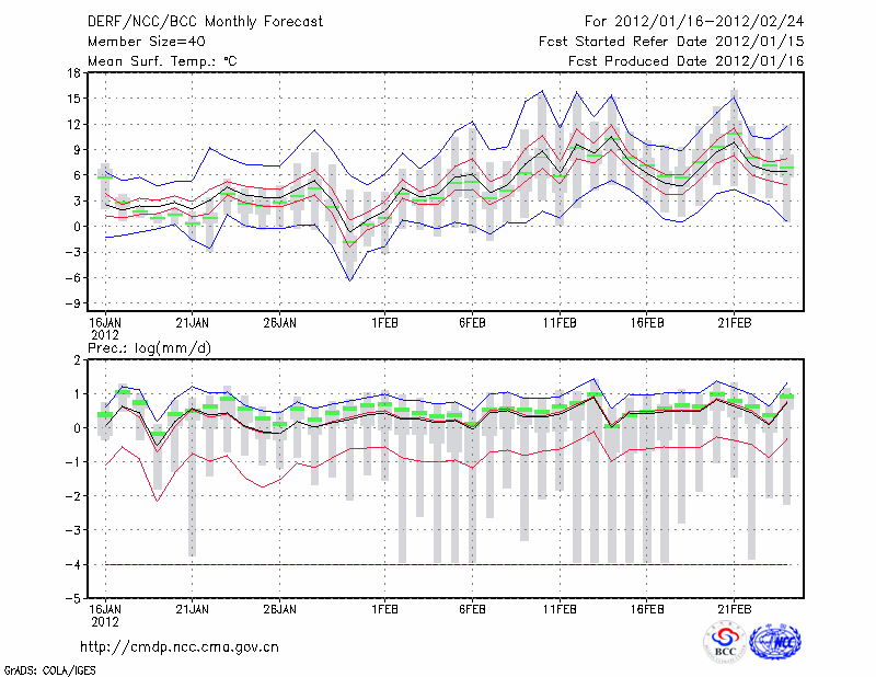 汉 口 (LAT:30.62 LON:114.13) 2012-01-16        预测