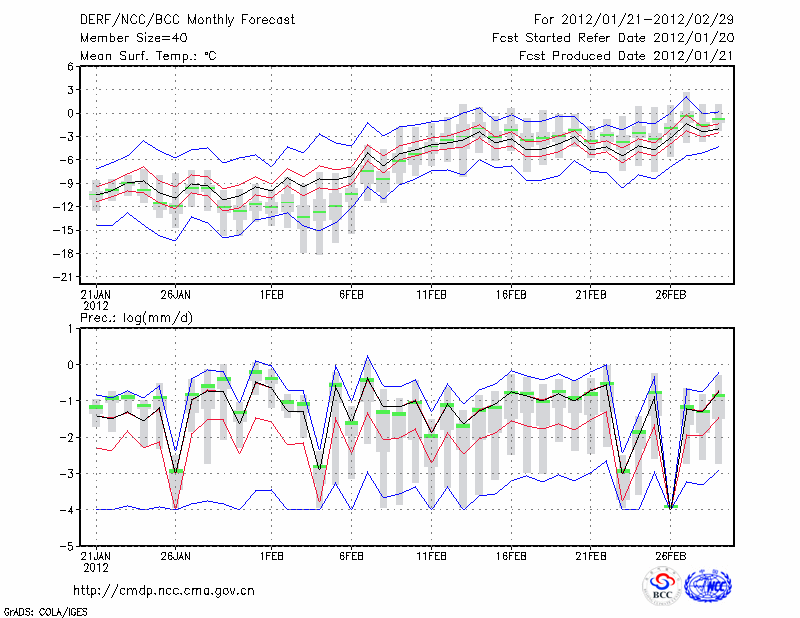 酒 泉 (LAT:39.77 LON:98.48) 2012-01-21        预测