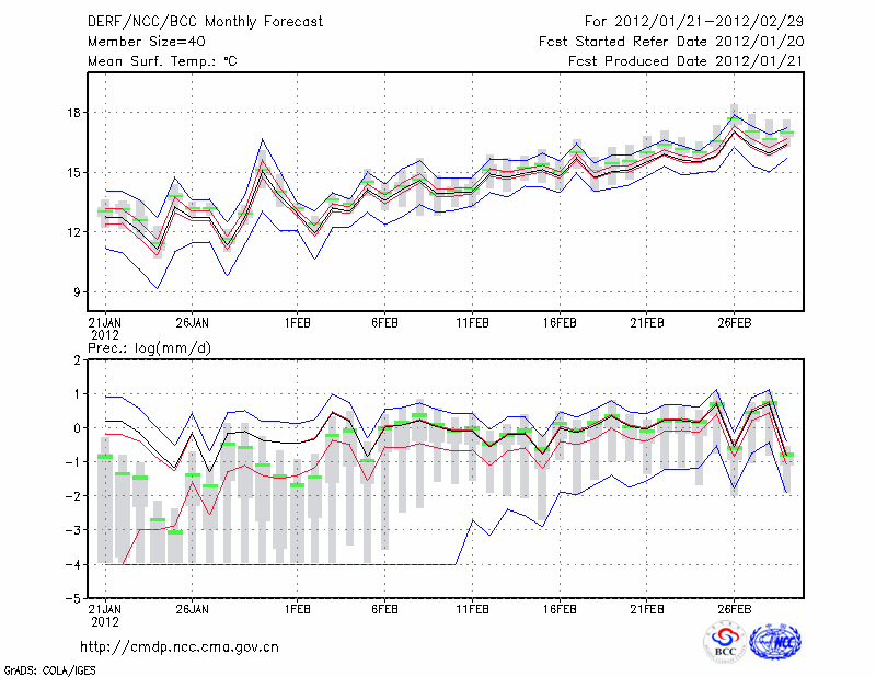 临 沧 (LAT:23.95 LON:100.22) 2012-01-21        预测