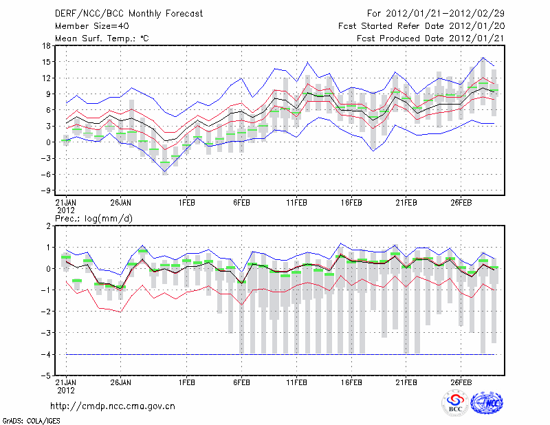 钟 祥 (LAT:31.17 LON:112.57) 2012-01-21        预测