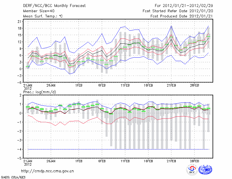 南 昌 (LAT:28.60 LON:115.92) 2012-01-21        预测