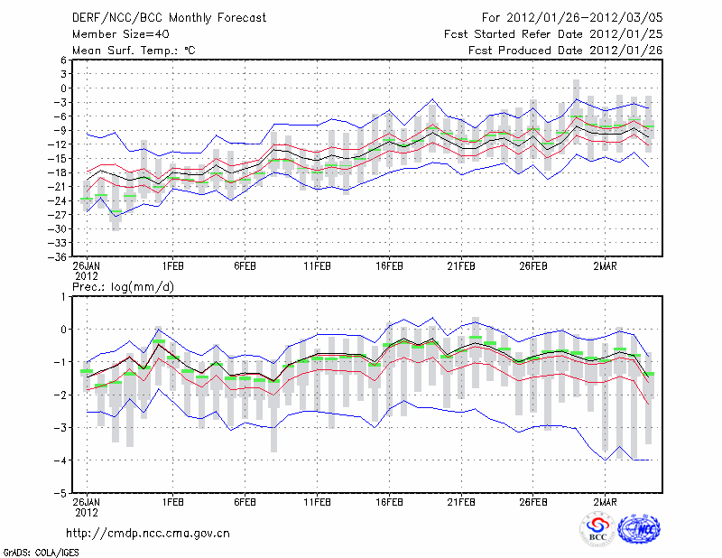 哈 尔 滨 (LAT:45.75 LON:126.77) 2012-01-26        预测